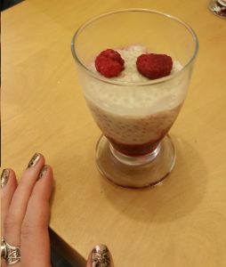 Comme vous pouvez le constater je l’ai réalisé comme expliquée sur le site des délices d’Hélène avec les étages (1 framboise puis 1 lait de coco et amandes), ou en mélangeant tout avant de verser le contenu dans mes verrines ! Comme vous préférez, personnellement j’aime bien que l’ensemble ait le goût de la framboise.