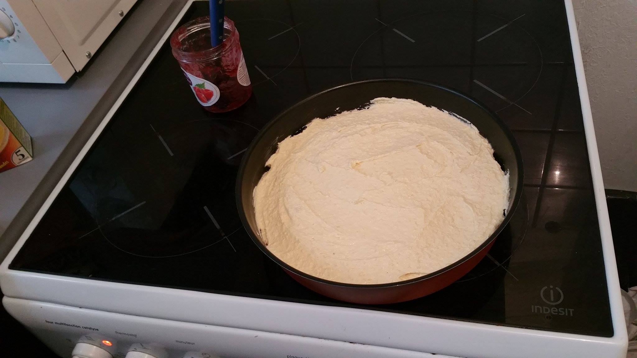 - Pressez la pâte dans le moule et recouvrez-là de confiture