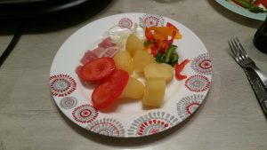 3. Émincer les poivrons, les tomates, l’oignon, la courgette ; disposer les dans des bols que chacun puisse choisir ce qu’il souhaite